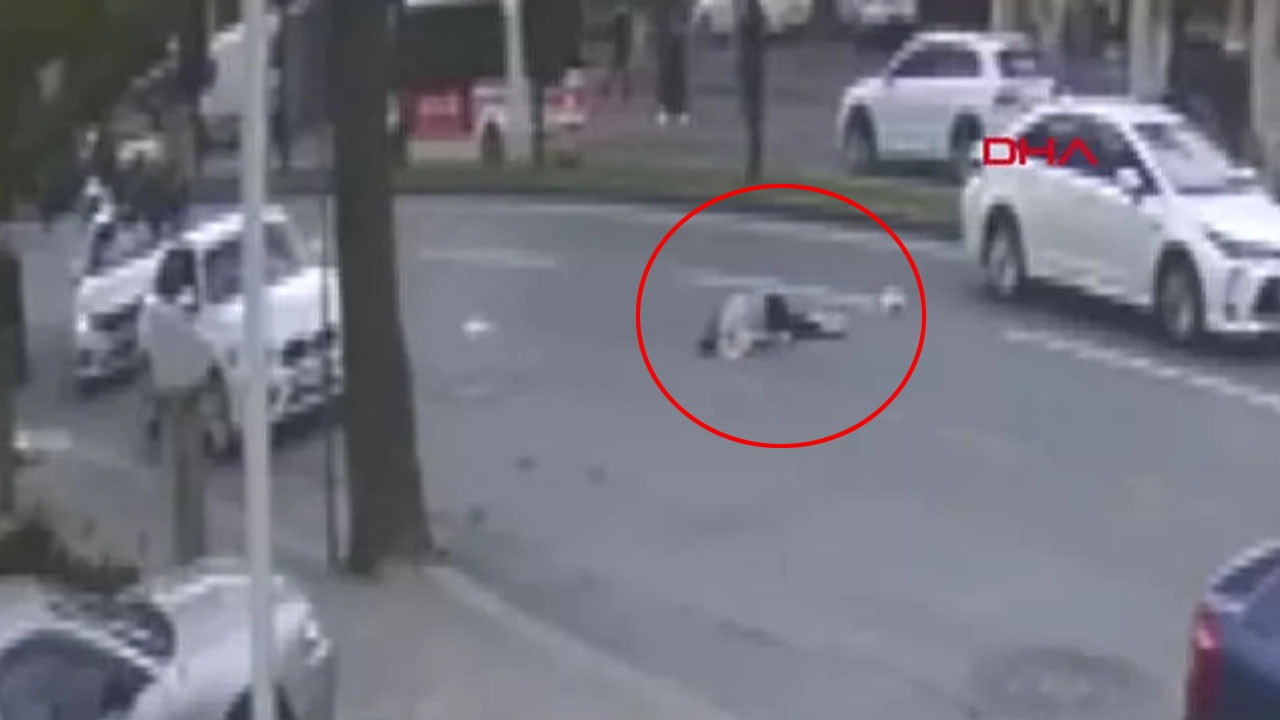 Bahçelievler'de yolun karşısına geçerken otomobilin çarpmasıyla yayanın ağır yaralandığı kaza güvenlik kamerasına yansıdı