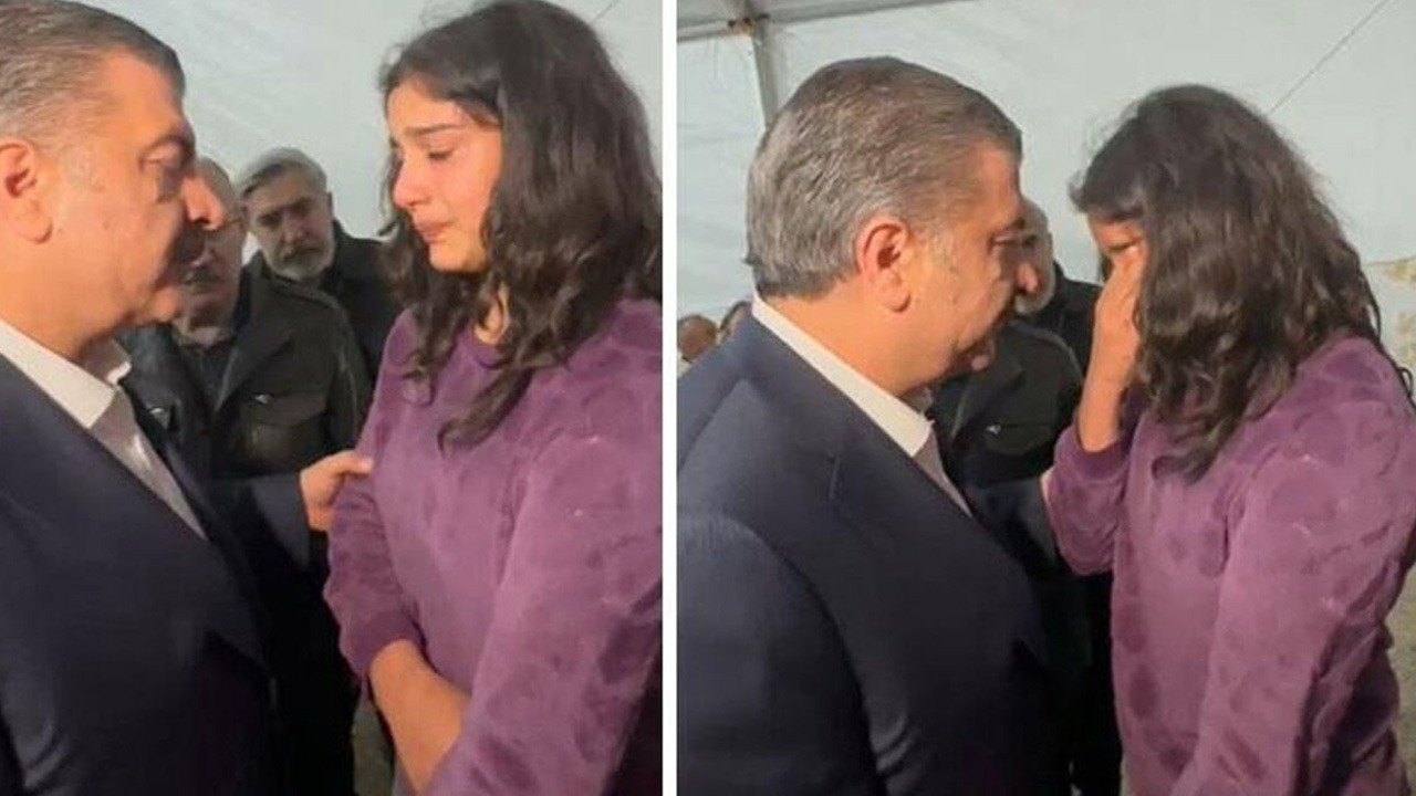 Hatay'da depremzedelerle bir araya gelen Sağlık Bakanı Fahrettin Koca'nın "Bizden isteğin var mı" dediği kız çocuğunun "Benim babam yok, ben sizi baba yerine koyuyorum" yanıtı herkesi duygulandırdı.