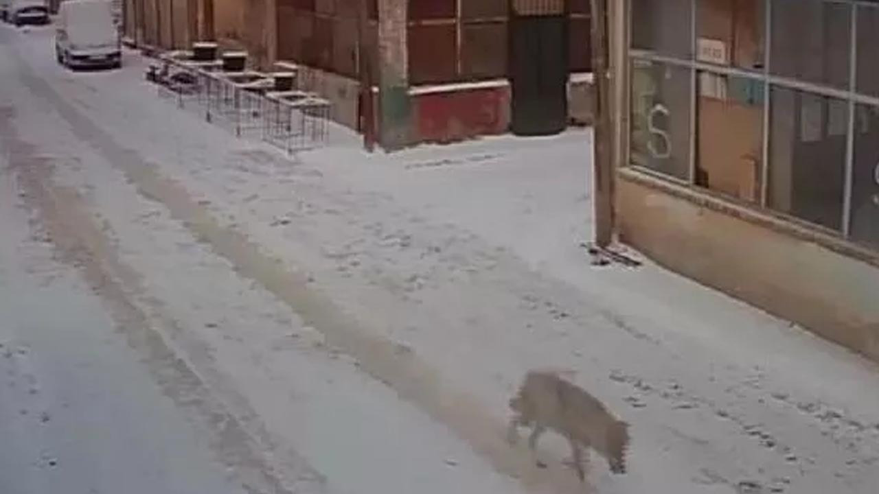 Bayburt'ta gündüz saatlerinde kent merkezine inen bir kurt güvenlik kameralarınca görüntülendi