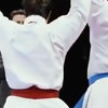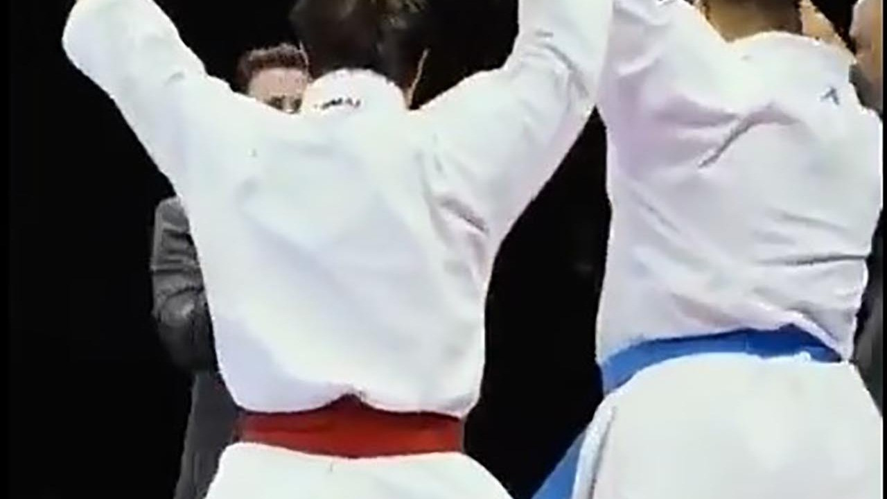 Kısa süre sonra maçın moderatörleri de karate şampiyonlarına katıldı ve herkes el ele tutuşup ellerini kaldırdı.