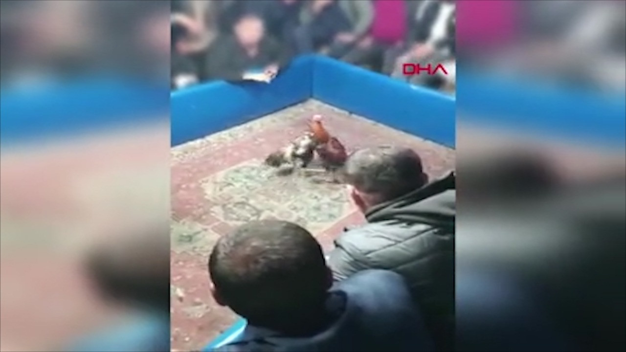Görüntülerde yaklaşık 30-40 kişinin horoz dövüştürüp, izlediği görüldü.