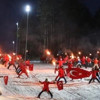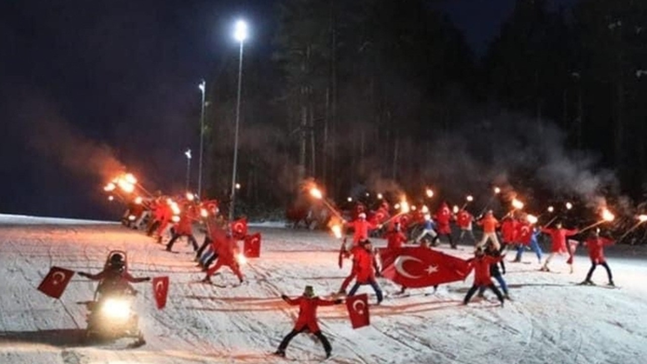 Sarıkamış’ta kayak sezonunun açılışı yapıldı. Meşalelerle kayan kayakçılar ise havadan görüntülendi