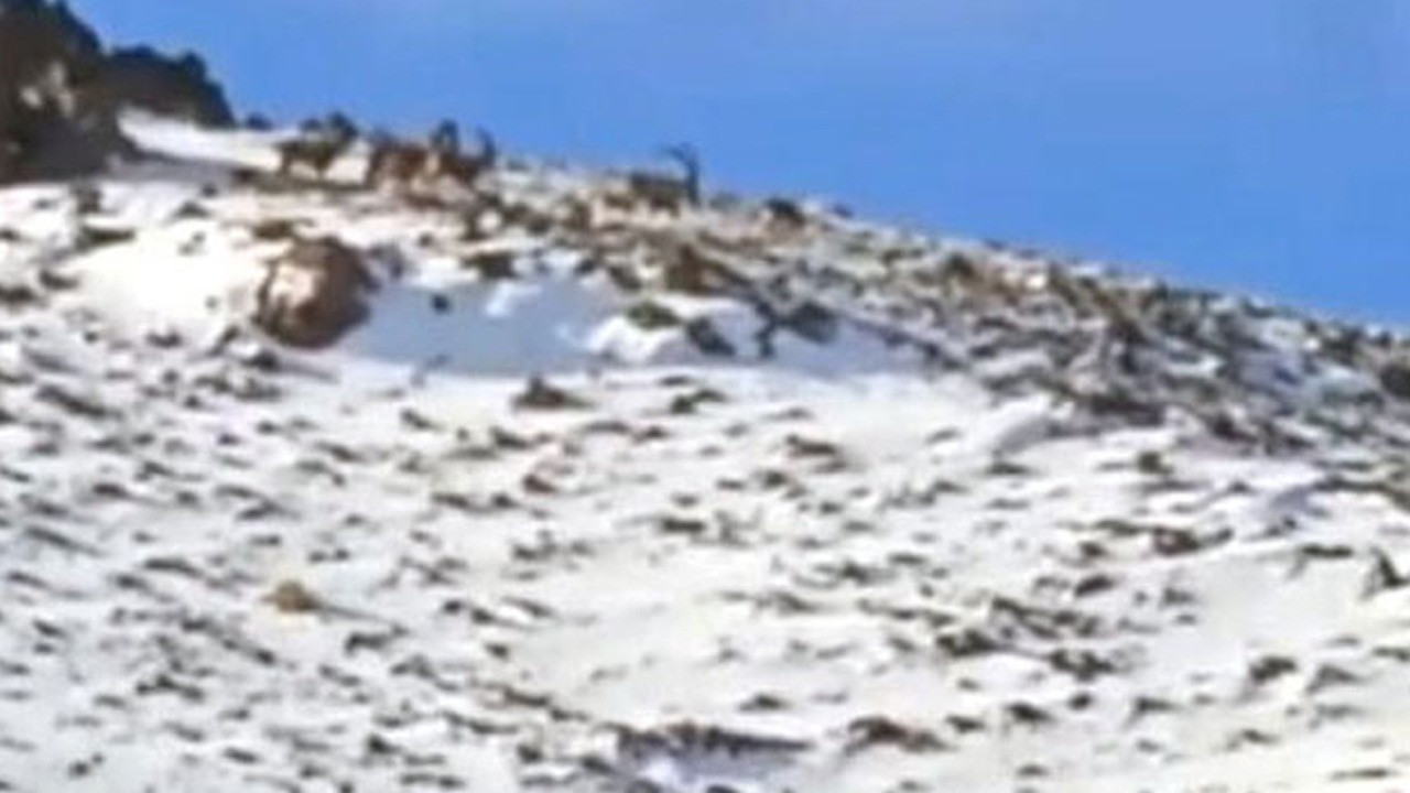 Koruma altındaki dağ keçileri, zaman zaman yüksek noktalardan köy merkezine yakın noktalara kadar iniyor. Saray ilçesine bağlı Turan köyü çevresinde gezinen dağ keçileri, beyaza bürünen dağın yamacından zirveye doğru kaçarken görüldü. Dağ keçileri, kısa süre sonra gözden kayboldu. Köyde yaşayanlar, bu anları cep telefonu kamerasıyla kaydetti.