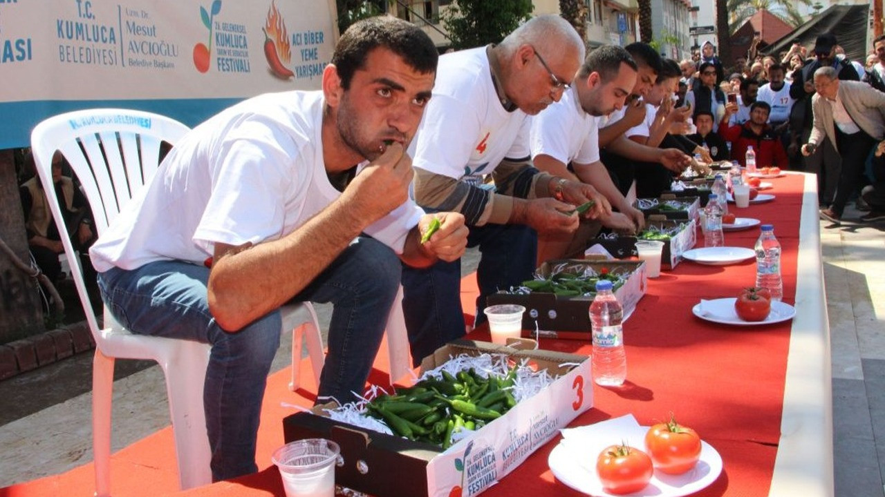 Yarışma öncesinde 30 katılımcıya, biberlerin acısını azaltmak için domates ve ayran dağıtıldı. Jüri üyeleri tarafından hassas terazilerde tartılan biberler, yarışmacılara verildi. 3 dakikada en fazla acı biber yemeye çalışan yarışmacılar zor anlar yaşadı.