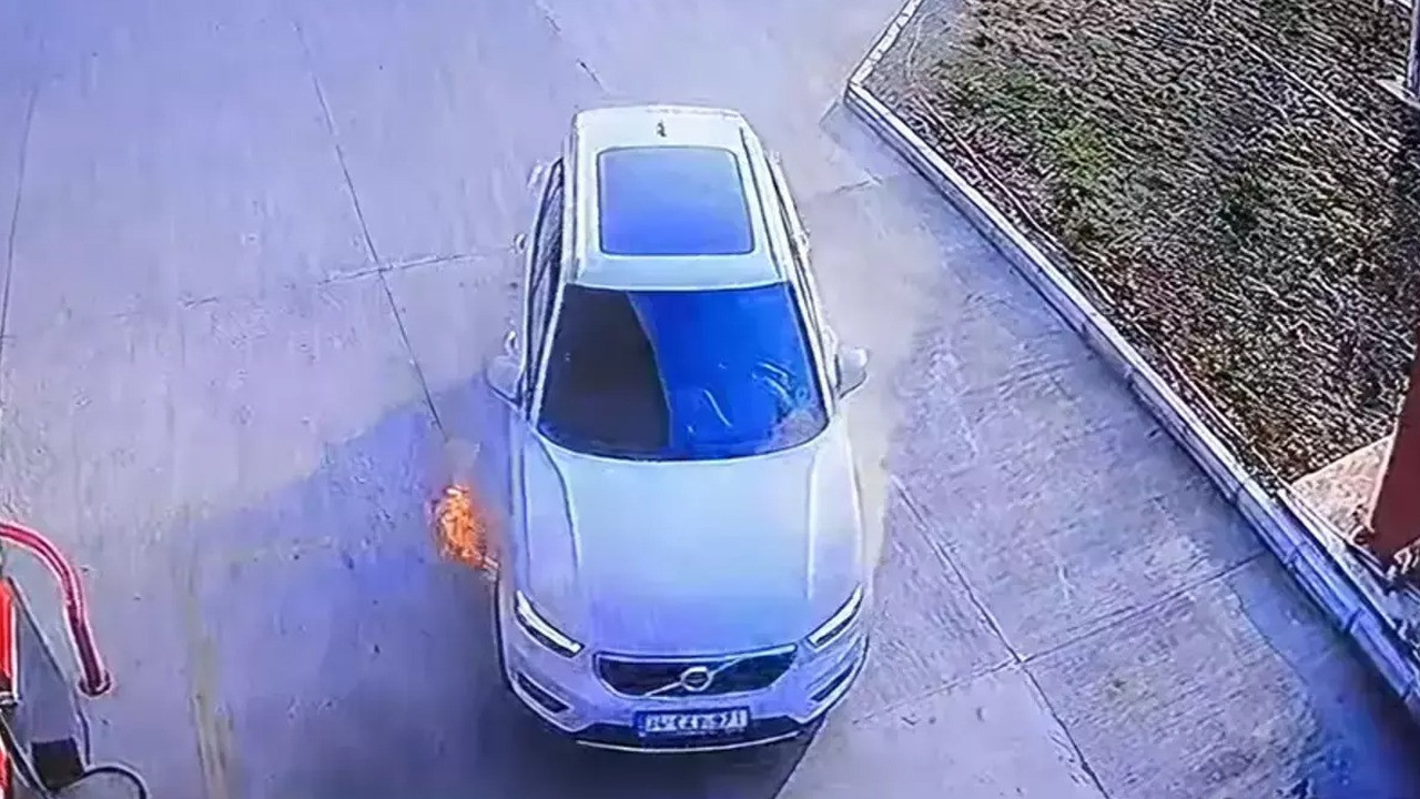 M. P., cipini kontrol etmek için yol üzerindeki akaryakıt istasyonuna girdiği sırada aracın motor kısmı alev aldı.