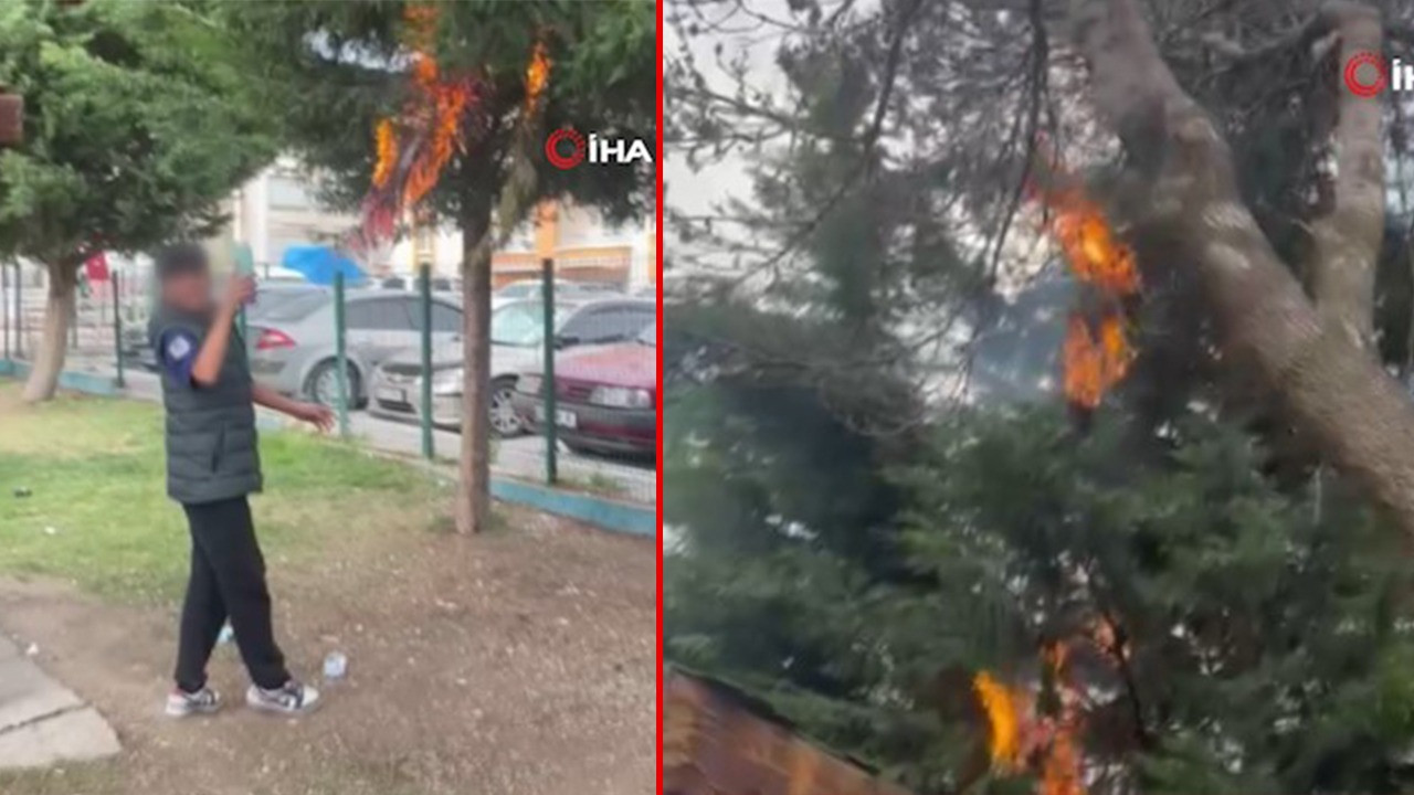 Polatlı ilçesi Kurtuluş Mahallesi'nde yer alan Emel Baykuş Parkındaki ağaçlardan biri, parktaki kalabalık çocuk grubu tarafından ateşe verildi. Yanan ağacı kayda alan çocukların işledikleri suçun farkında olmadan eğlendikleri anlar ise anbean kameraya yansıdı.