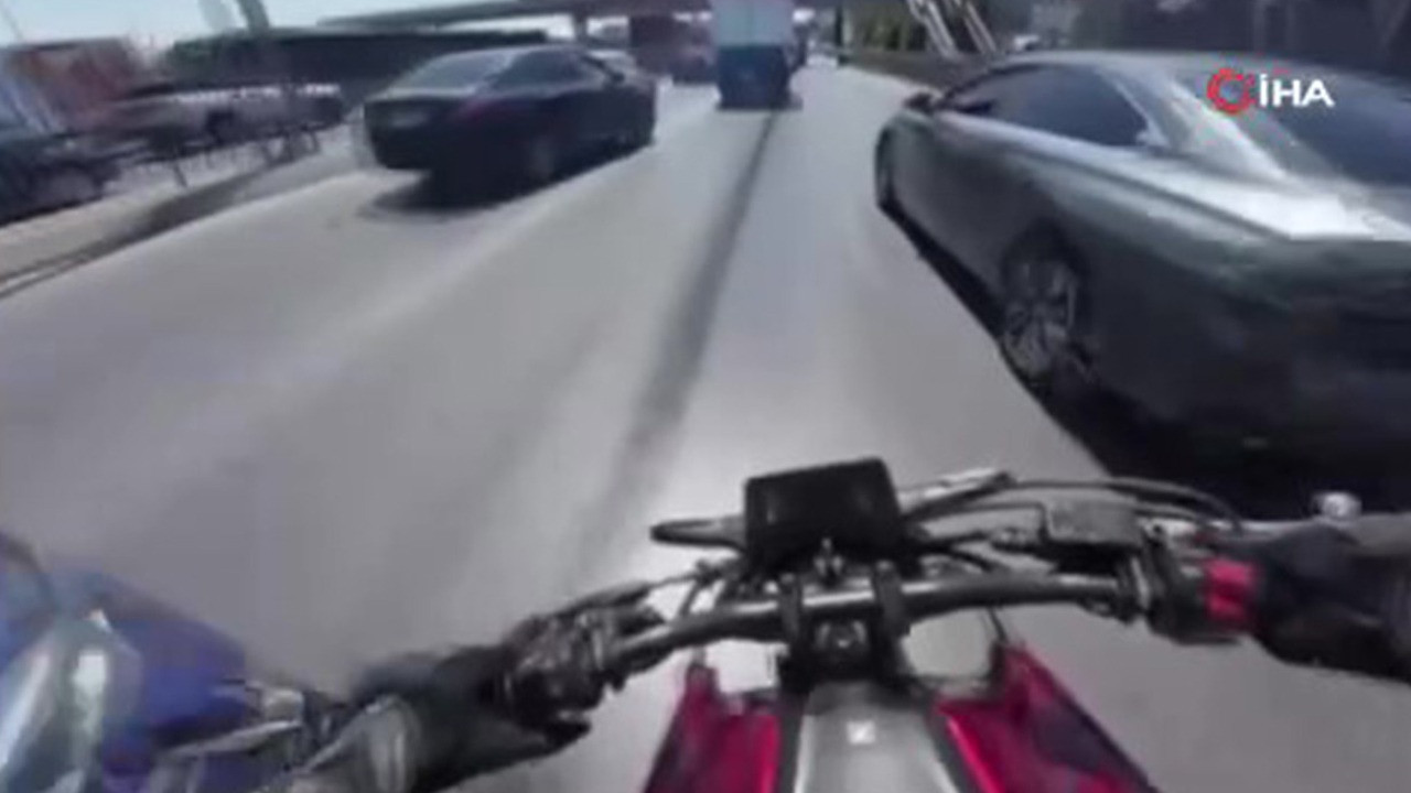 Yaşanan anlar motosikletinin kask kamerasına yansıdı.