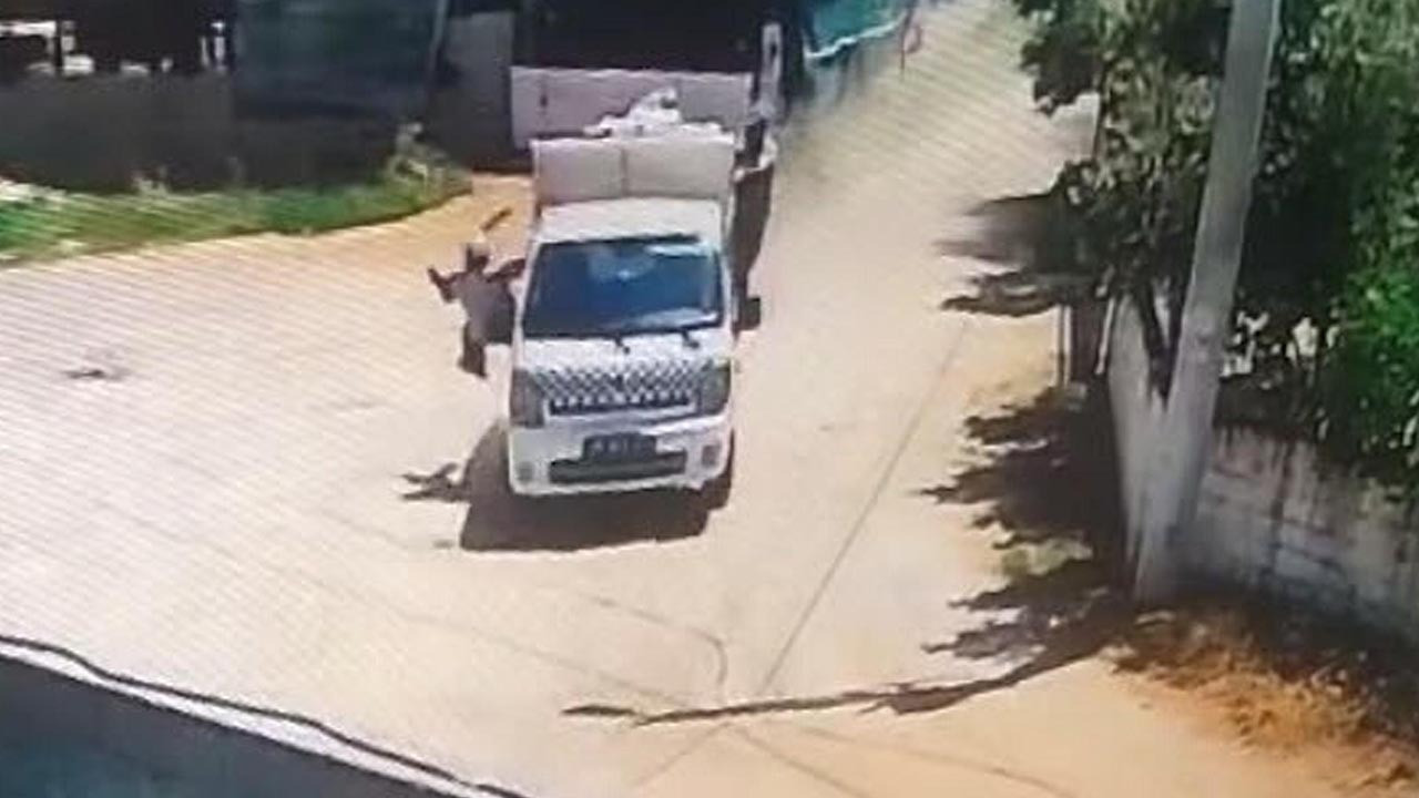 Olay anı ise çevrede bulunan güvenlik kamerasına yansıdı. Görüntülerde, aracın dönüş yaptığı sırada Hasan Dok’un dengesini kaybederek düştüğü anlar yer aldı.