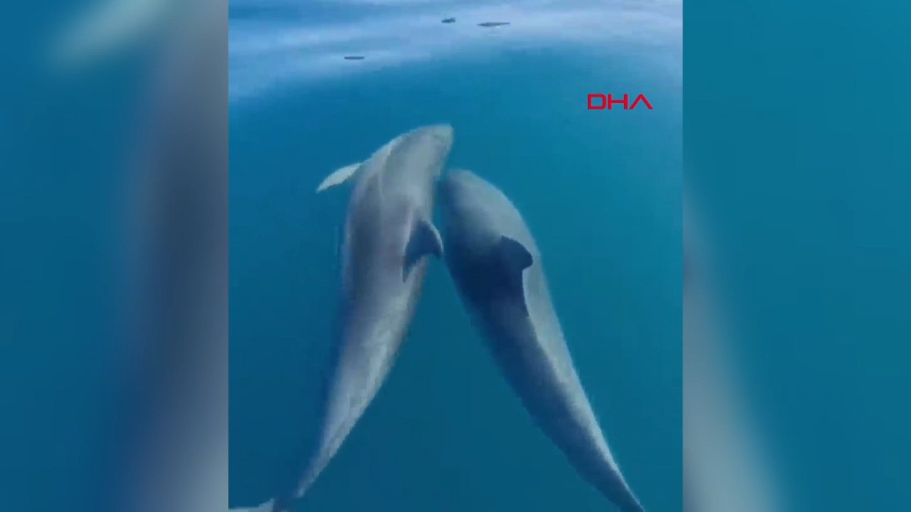 Bir süre tekne ile suda ilerleyen yunuslar daha sonra gözden kayboldu. Yavuzyiğit, o anları cep telefonu kamerasıyla kaydetti.
