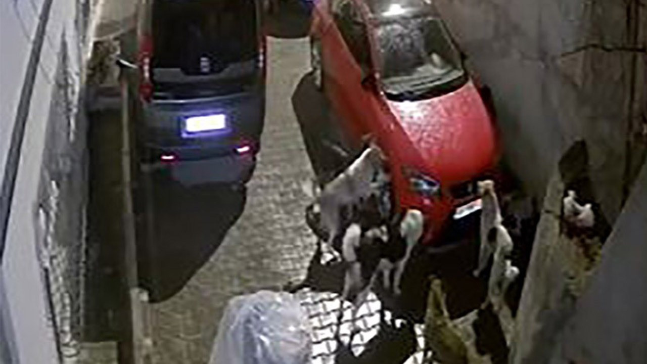 Olay, Ankara’nın Mamak ilçesinde meydana geldi. Alınan bilgilere göre, köpekler 18 Şubat tarihinde binanın garajında park halinde duran araca saldırarak çamurluğuna zarar verdi. Köpeklerin saldırı anı kameralara yansıdı.