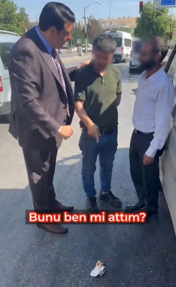 Yere çöp atan vatandaşın bulunduğu aracı durduran Başkan Yılmaz, vatandaşın attığı çöpü yerden almasını istedi.