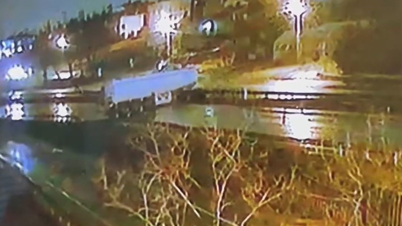 Kaza, sabah saat 06.00 sıralarında Büyükçekmece E-5 kara yolu Güzelce mevkiinde yaşandı. Edinilen bilgilere göre, Beylikdüzü yönüne seyreden plakası öğrenilemeyen TIR, yağmur nedeniyle kayganlaşan yolda sürücüsünün kontrolünden çıktı. Bariyere çarpan TIR ters döndü. İhbar üzerine olay yerine ekipler sevk edildi. Kaza nedeniyle yol uzun süre trafiğe kapandı. Aracın kaldırılmasıyla trafik normale dönerken yaşananlar güvenlik kamerasınca kaydedildi.