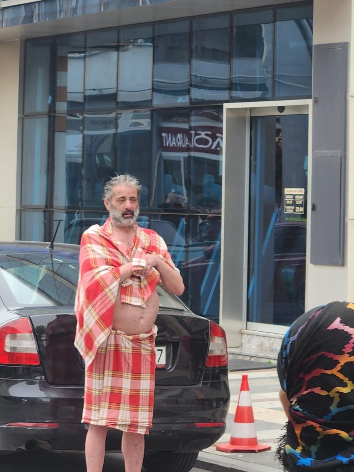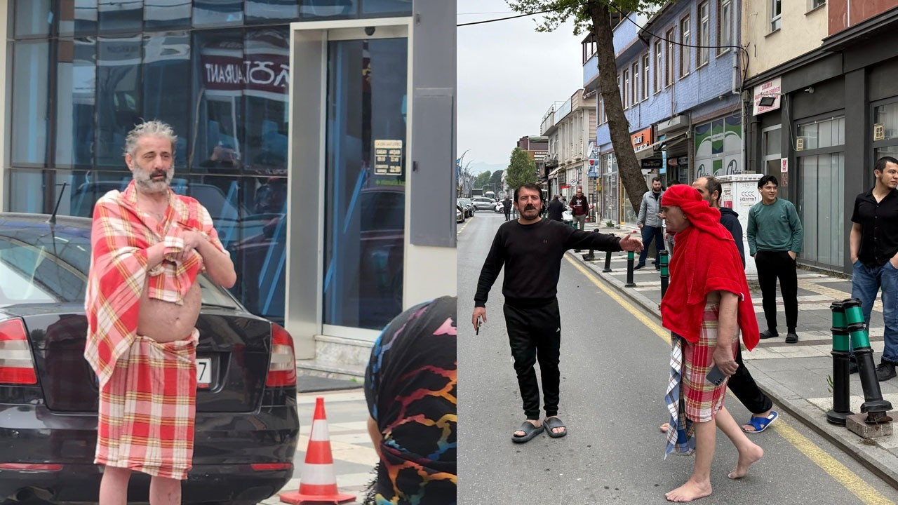Deprem anına hamamda bulunan bir kişi peştamalla sokağa çıkarken, bir binada ise işçiler hiçbir şey olmamış gibi çalışmalarına devam etti.
