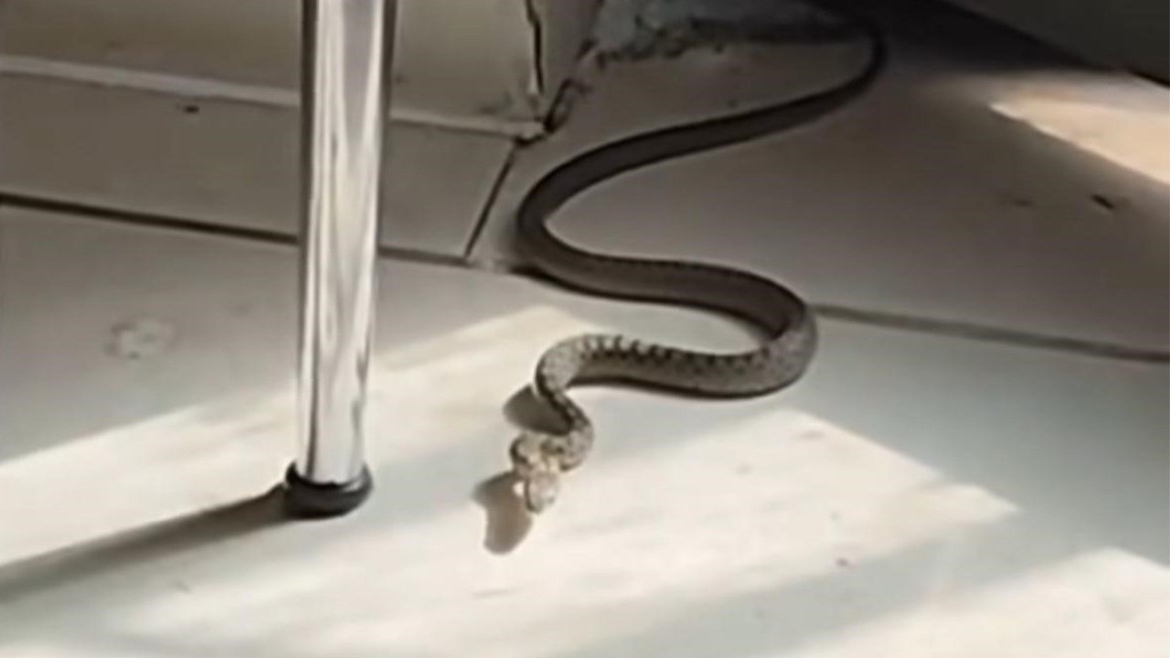 İlçenin Talaytepe Mahallesi'nde yılan, bir evin mutfak pasından içeri girdi. Yılanın süzülerek gelişini balkonda gören kedi, defalarca miyavlayarak zıpladı. O anlar, vatandaş tarafından cep telefonuyla kaydedildi.