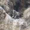 Dağlık alanda bulunan yaban keçilerini avlamak için bölgede gezinen vaşağın doğayla uyumlu kamuflajı izleyenleri adeta mest etti.
