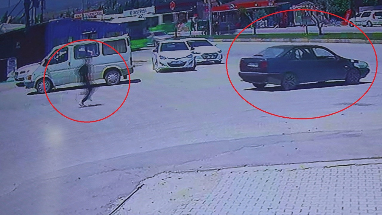 Kaza, Antakya ilçesi Habibi Neccar kavşağında yaşandı. Bölgede bulunan akaryakıt istasyonuna aracın park eden sürücü, el frenini çekmeyi unuttu. Sürücünün markette olduğu esnada hareket etmeye başlayan otomobil, hızla yola doğru çıktı. Anbean kameraya yansıyan olayda otomobil, seyir halindeki halk otobüsüyle çarpıştı. El freninin çekilmediği otomobilin ana yola gittiği ve sürücüsünün aracını yakalamaya çalıştığı o anlar saniye saniye güvenlik kamerasına yansıdı. Kazada yaralanan olmazken otomobilde ve otobüste maddi hasar oluştu.