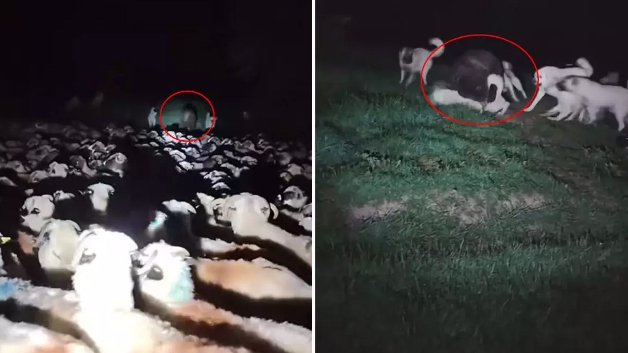 Gece saatlerinde koyun sürüsüne saldıran bir ayı, sürünün içinden bir koçu alıp götürmek istedi. Sürüdeki çoban köpekleri ayıya karşı koyunca olay kısa sürede paniğe dönüştü.