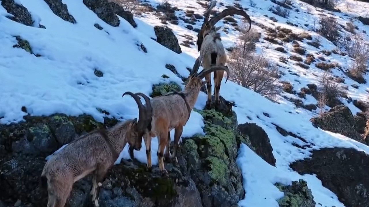 Yaban hayatına ev sahipliği yapan ilçede Tamzara Mahallesi civarındaki yüksek kayalıklarda sürü halinde yaban keçileri fark edildi.