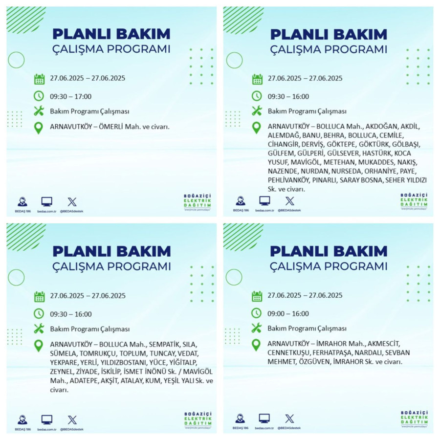 BUGÜN 27 HAZİRAN İSTANBUL ARNAVUTKÖY ELEKTRİK KESİNTİSİ