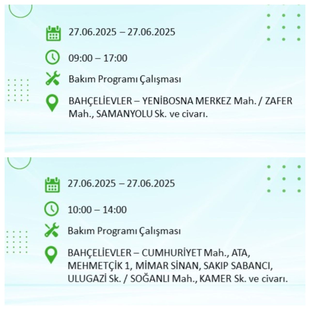 BUGÜN 27 HAZİRAN İSTANBUL BAHÇELİEVLER ELEKTRİK KESİNTİSİ
