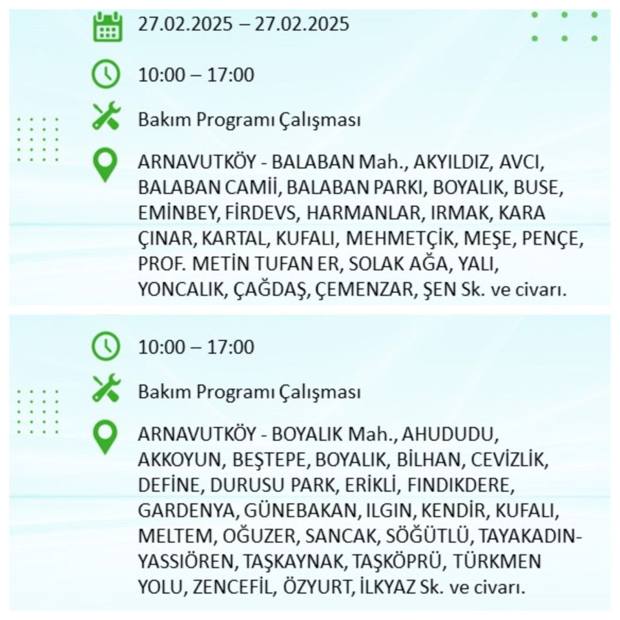 BUGÜN 27 ŞUBAT İSTANBUL ARNAVUTKÖY ELEKTRİK KESİNTİSİ