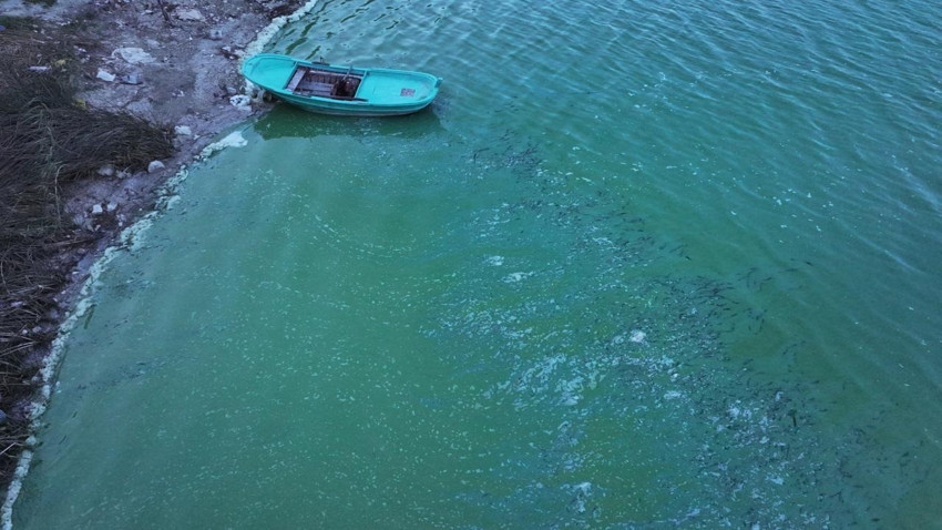 Suda fark edilen renk değişimi dronla havadan görüntülendi.