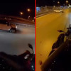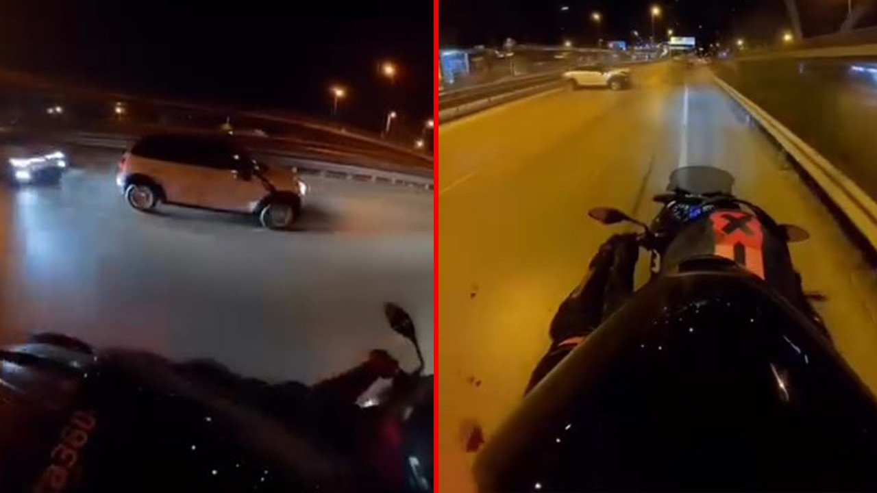 Kaza anı, aynı istikamette ilerleyen bir motosikletlinin kask kamerası tarafından saniye saniye kaydedildi. Görüntülerde çarpışma ve araçların savrulma anları yer aldı. O anları kaydeden motosikletli ise kazadan kıl payı kurtuldu.