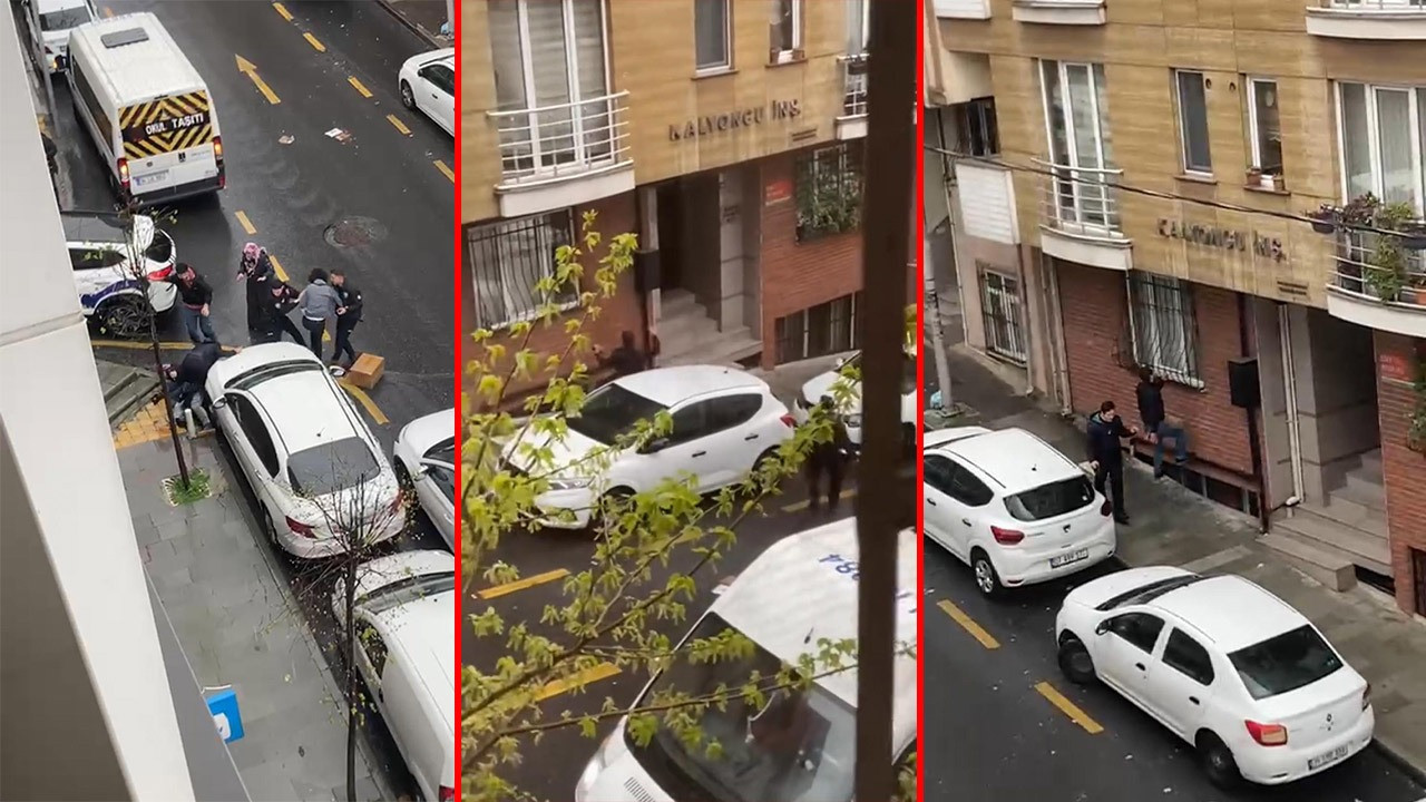 Polis ekipleri kısa sürede olay yerine geldi. Polisi gören dairede oturan kişi de dışarı çıktı. Bu kez de taraflar polisin yanında tekme tokat birbirine girdi. Ortalığın karıştığı anlar cep telefonu kamerasına saniye saniye yansırken, polis ekiplerinin müdahalesi sonrasında taraflar gözaltına alındı. Polis olayla ilgili inceleme başlattı.
