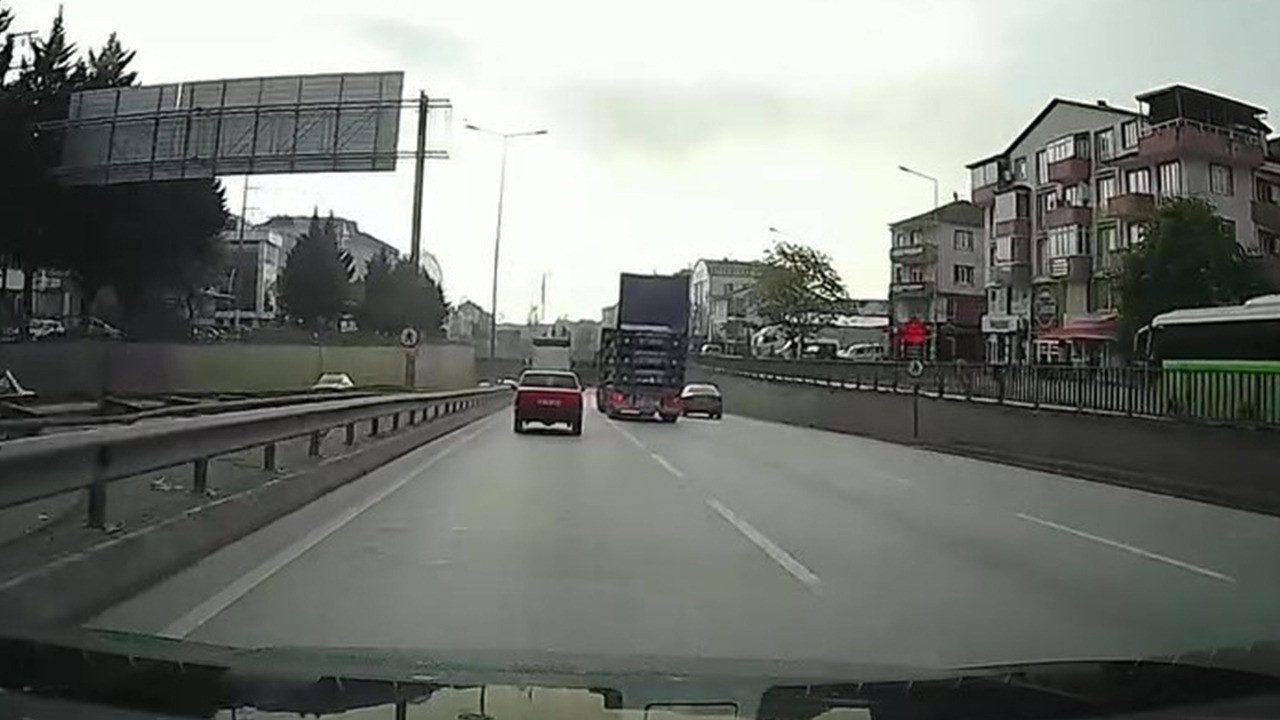 Kocaeli’de kapağı açık halde seyir halinde olan kamyon tehlike saçtı. Durumu fark edemeyen sürücü, D100 Karayolu Derince Tüneli’nden geçerken kaza yaptı. Kapağın tünele çarpması ile araç ve tünelde hasar meydana geldi. Çarpmanın şiddetiyle durumu fark eden sürücü aracı sağ şeride çekerek durdurdu. O anlar seyir halinde olan aracın kamerasına yansıdı.