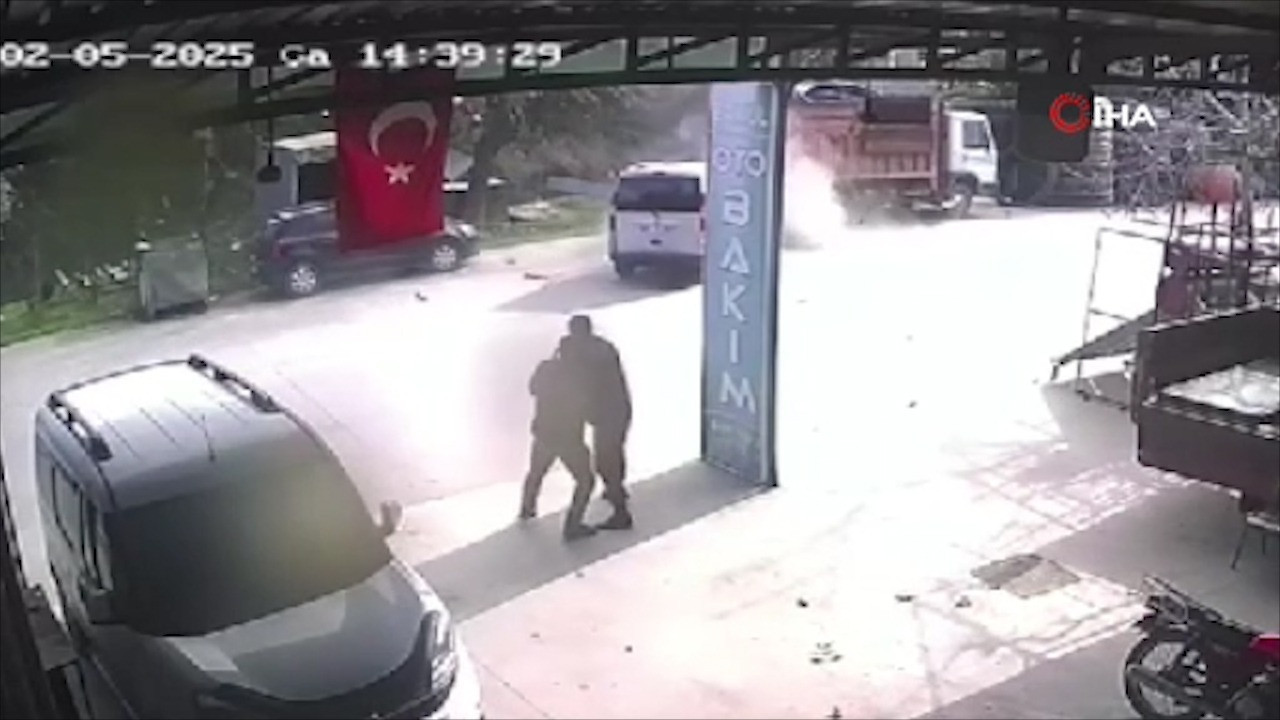 Kaza anları ise bölgedeki bir iş yerinin güvenlik kamerasına anbean yansıdı. Görüntülerde, kontrolden çıkan hafif ticari aracın üzerine doğru geldiğini gören yaya Şükrü Ertan'ın kamyonun önüne saklanmaya çalıştığı bu esnada aracın çarpmasıyla hızla yerinden hareket eden kamyonun altında kalarak yaralandığı yer aldı.