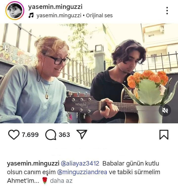 İstanbul Kadıköy'de uğradığı bıçaklı saldırı sonucu hayatını kaybeden Mattia Ahmet Minguzzi'nin annesi, sosyal medya hesabından Babalar Günü'nde duygulandıran bir paylaşım yaptı. Yasemin Minguzzi, Barış Manço'nun Gülpembe şarkısını söyleyerek, eşinin Babalar Günü'nü kutladı.
