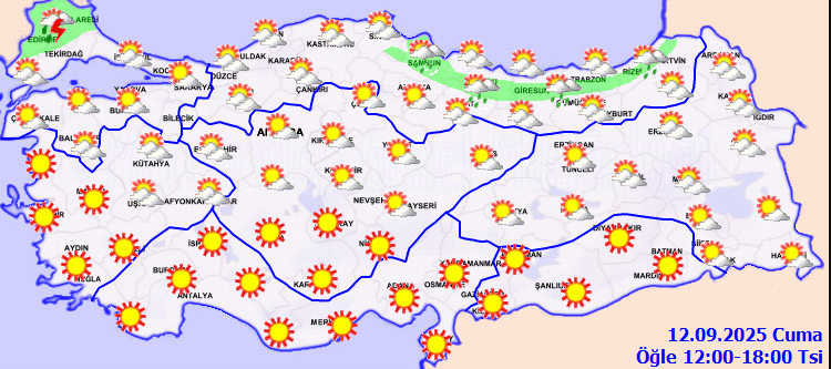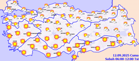 Meteoroloji Genel Müdürlüğü tarafından yapılan tahminlere göre: Ülkemizin kuzey kesimlerinin parçalı, yer yer çok bulutlu, Trakya'nın batısı, Orta ve Doğu Karadeniz kıyı illerinin iç kesimleri ile Samsun çevrelerinin yerel sağanak ve gök gürültülü sağanak yağışlı, diğer yerlerin az bulutlu ve açık geçeceği tahmin ediliyor.
