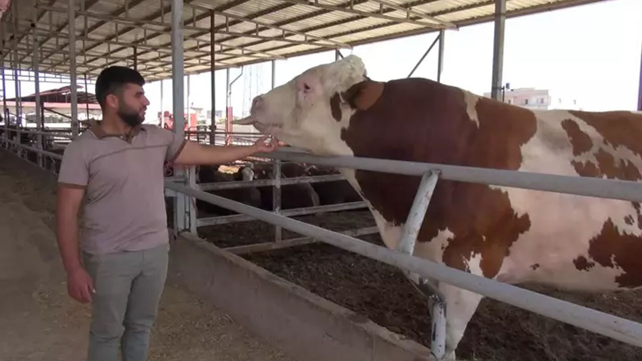 Hatay'da Kurban Bayramı hazırlıkları sürerken, besiciler de kurbanlıklarını sergilemeye başladı. Reyhanlı ilçesinde kurulan kurban pazarında besici İbrahim Yumuşak'ın 'Yusuf' adını verdiği 4 yaşındaki 1 ton 400 kilogram boğası, görenlerin ilgisini çekti. Yusuf'a 420 bin lira fiyat biçen Yumuşak, "Çiftliğimizde diğer kurbanlıklar gibi Yusuf'u da bayrama hazırlıyoruz. Alıcısına şimdiden hayırlı olsun" dedi.