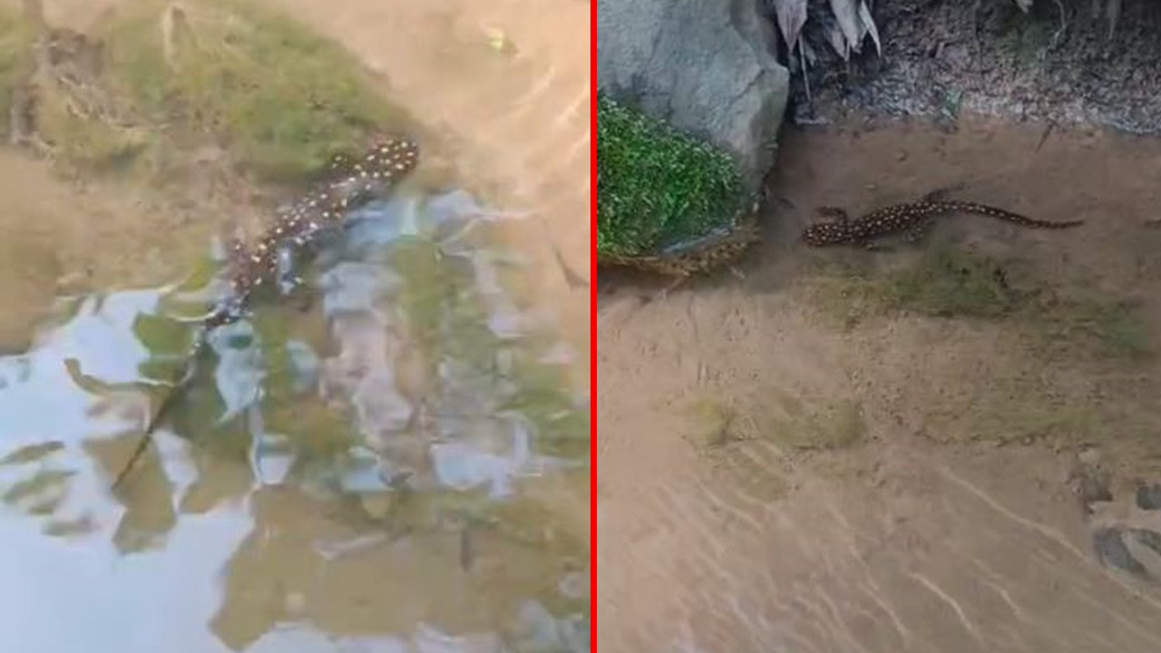 Elazığ'ın Palu ilçesinde bir derede nadir görülen sarı benekli semenderi fark eden bir vatandaş, o anları cep telefonu kamerasıyla kayıt altına aldı. Derede yüzerken görüntülenen semender bir süre sonra gözden kayboldu.