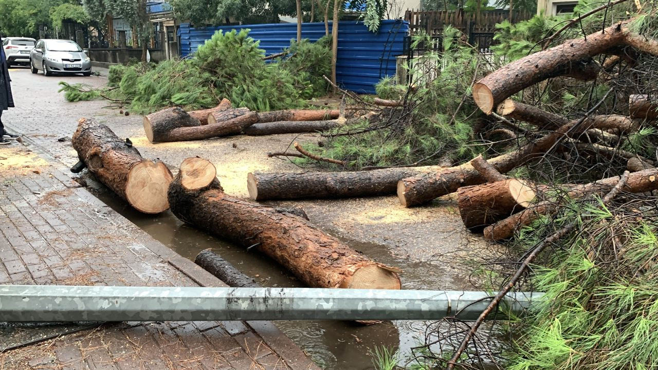 Kocaeli’nin İzmit ilçesinde etkili olan sağanak sırasında, bir emlak ofisinin bahçesindeki ağaç, yola devrildi.
