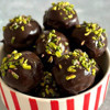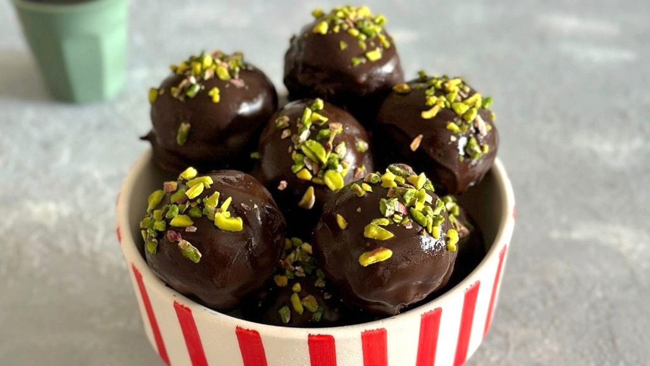 Daha sonra bitter çikolatayı benmari usulü eritin ve hazırladığınız topları erimiş çikolataya batırın. Dilerseniz Antep fıstığıyla süsleyin.