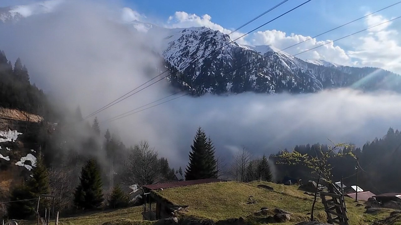 Kaçkar Dağı eteklerine kadar yükselen sis bulutu, dronla havadan görüntülendi.