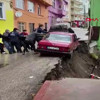 Toprak kayması yaşanan sokak araç ve yaya trafiğe kapatılırken, elektrik telleri emniyete alındı.