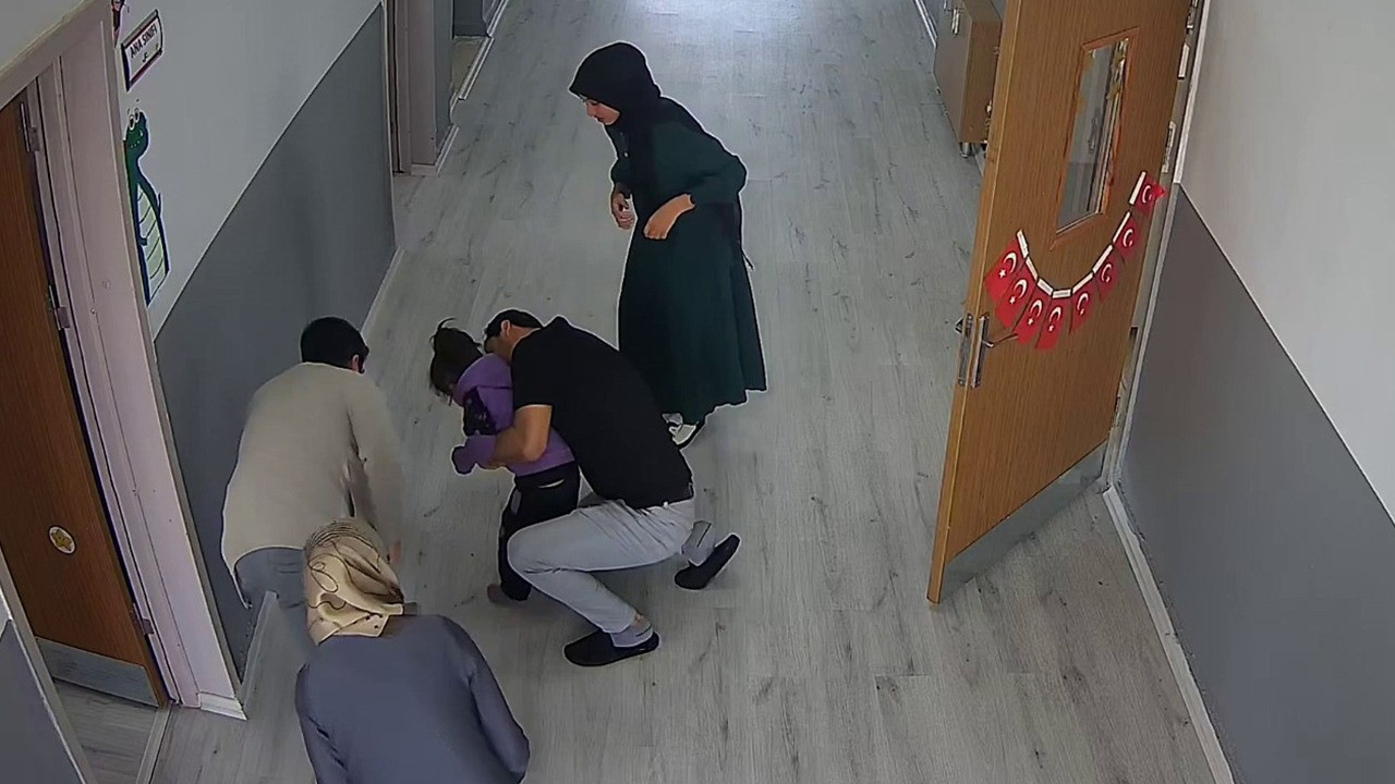 Şanlıurfa'da anaokulu öğrencisinin boğazına kaçan yabancı madde, okul müdürünün heimlich manevrasıyla çıkartıldı. O anlar güvenlik kamerasına saniye saniye yansıdı.