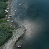 Göldeki suyun çekilmesi sonucu tarihi olduğu değerlendirilen taş kalıntılar ortaya çıktı, sandallar karaya oturdu.