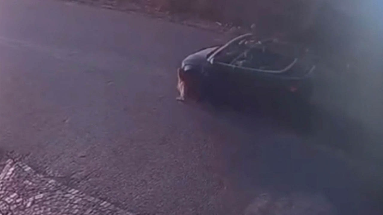 Köpeğe arabanın çarptığı anlar ise sitenin güvenlik kamerasına yansıdı.