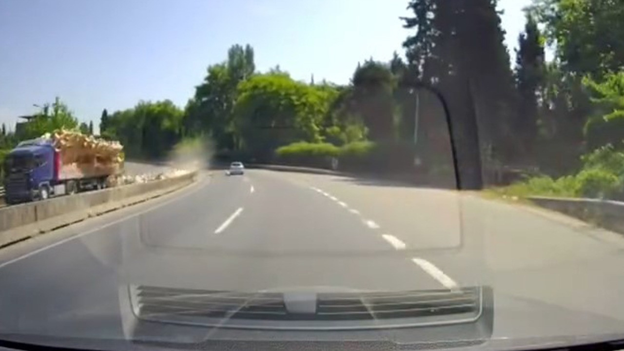 İlginç kaza 11.00 sıralarında Gonca rampası mevkiinde meydana geldi. Bir fabrikadan tırın dorsesine gelişi güzel yüklenen kablo makaraları, hareket halindeyken bir anda yola devrildi. Kaza anı araç kamerasına saniye saniye yansırken, yuvarlanan makaralardan bazıları karşı şeride geçti. Karşılarında yuvarlanan makaraları gören sürücüler şaşkına döndü.