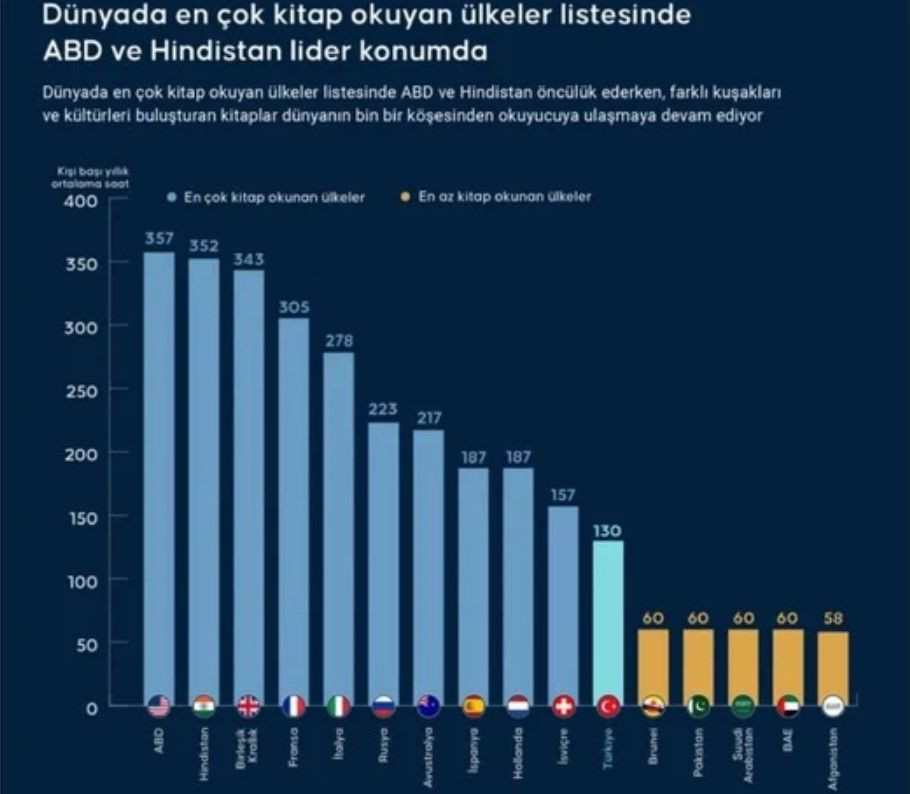 World Population Review ve CEO World Magazine tarafından yayımlanan 2024 verileri, dünyada en çok kitap okuyan ülkeleri ve okuma alışkanlıklarını bir kez daha gözler önüne serdi. Yapılan araştırmaya göre, kişi başı yıllık kitap okuma süresi ve kitap sayısına göre sıralama oluşturuldu.