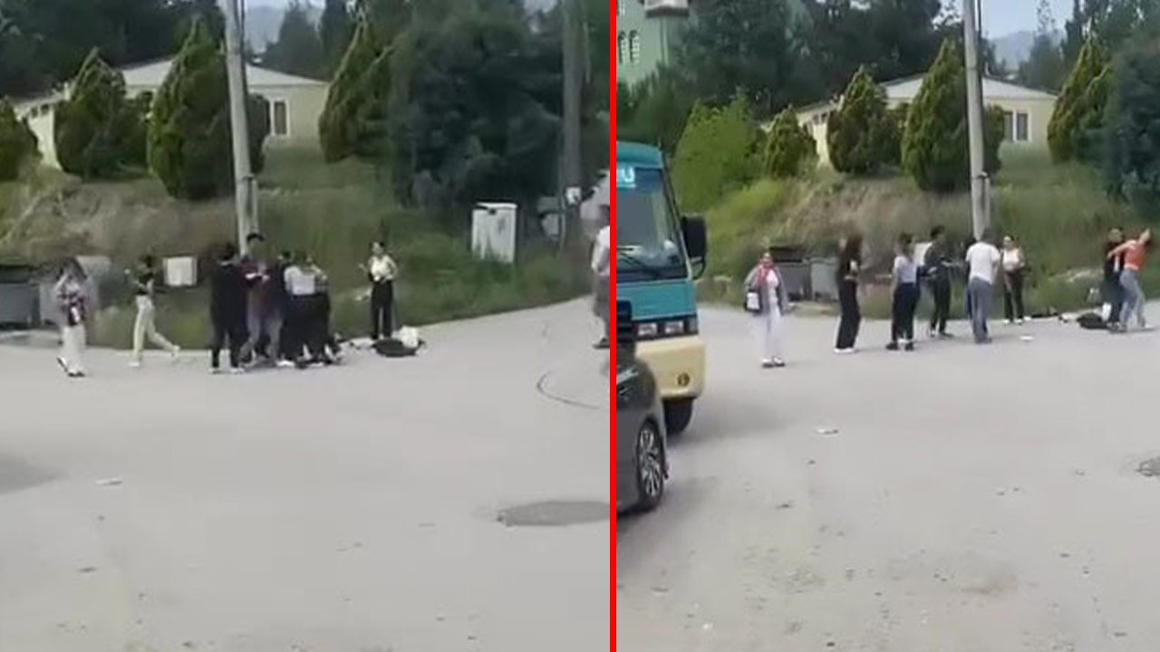 Üniversiteli genç kızlar sokak ortasında saç saça kavga etti! 'Erkek arkadaşıma yan baktın' kavgası kameraya böyle yansıdı