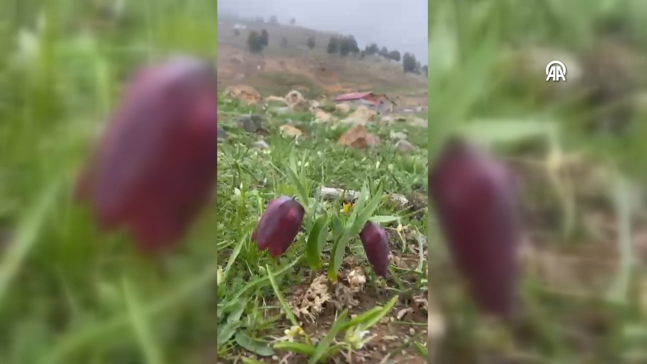 Yöre halkınca korunan ters laleler farklı renkleriyle yeşil çayırları süslüyor.