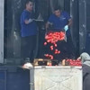 Öte yandan, olay esnada çevrede bulunan bir vatandaşın çöpe atılan domatesleri almaya çalıştığı görüldü.